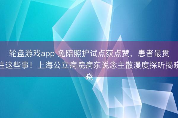 轮盘游戏app 免陪照护试点获点赞,患者最贯注这些事!上海公立病院病东说念主散漫度探听揭晓