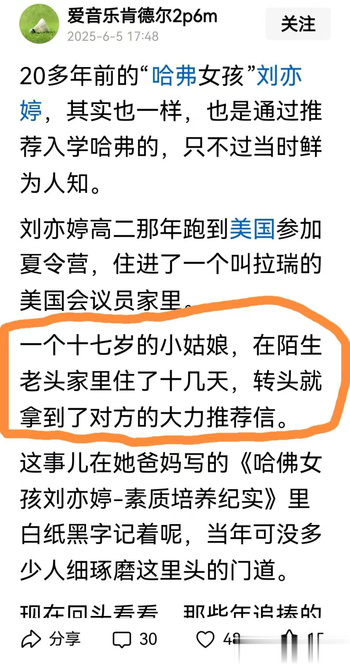 当年,在《哈佛女孩刘亦婷》一书的指引下。
