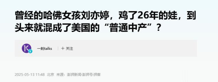 澎湃新闻——如故的哈佛女孩刘亦婷,鸡了26年的娃,到头来就混成了好意思国的“普通中产”?