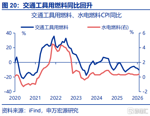 耗尽品CPI:交通器用、通讯器用CPI均有回升。非食物中,交通器用、通讯器用CPI均有所回升,边因缘别上升0.1、0.7个百分点至-1.1%、2.6%;家用器具CPI有所回落,同比下行2.9个百分点至2.4%。交通器用用燃料CPI同比上行12.4个百分点至3.4%,水电燃料CPI同比上行0.2个百分点至0.6%。