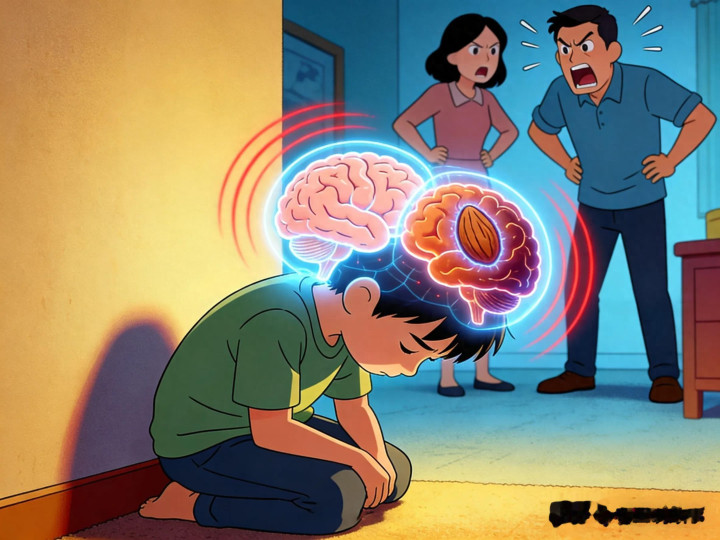 照管团队明确界定:每周被父母吼叫、严厉训斥3次及以上,即组成“高频率语言暴力环境”。在这种环境下成长的孩子,大脑会出现三大核心变化: