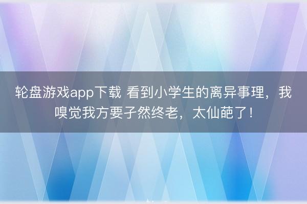 轮盘游戏app下载 看到小学生的离异事理,我嗅觉我方要孑然终老,太仙葩了!