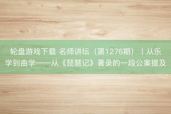 轮盘游戏下载 名师讲坛(第1276期)丨从乐学到曲学——从《琵琶记》著录的一段公案提及