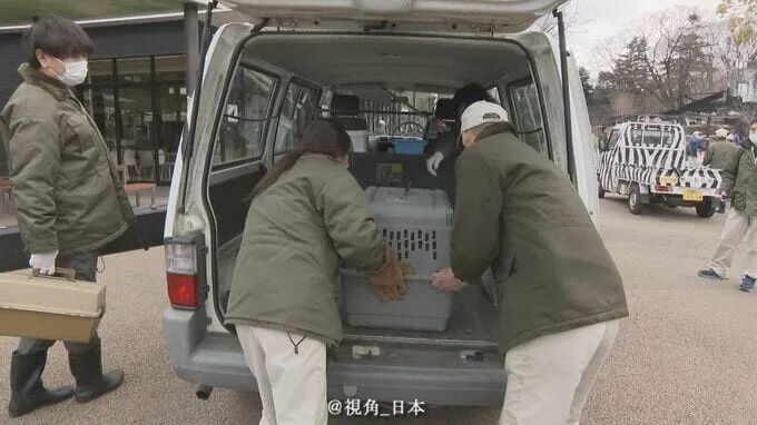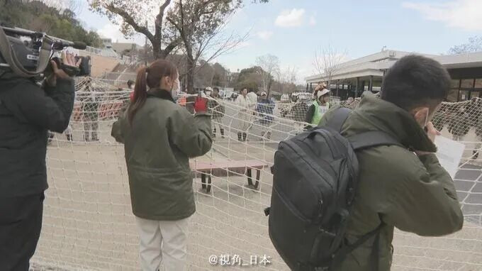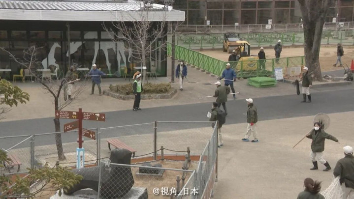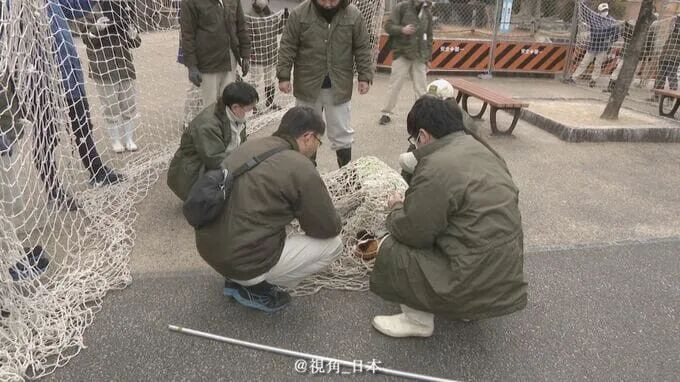 2月2日,名古屋东山动植物园开展了一场园内动物逃脱后的捕捉训练。训练中一名饲养员头顶一只小熊猫玩偶,假装是从饲养区逃离的小熊猫,在园内东奔西跑逃避追捕。但逃了约30分钟后还是被四面八方而来的大网围住,束手就擒。