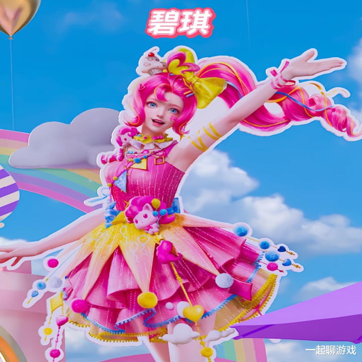领先咱们来看碧琪,第一眼就认为“元气满满”,诚然裙子上有很多珠子手脚点缀,看起来有些乱糟糟,但变装的五官、妆容齐属于玩家们比拟可爱的类型。