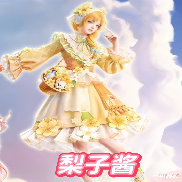 明黄色的梨子酱,看起来像是中叶纪的邻家小妹,腰间的花篮也挺可人,这种颜值在《和平精英》里还是算得上是手册级别的寻宝了。