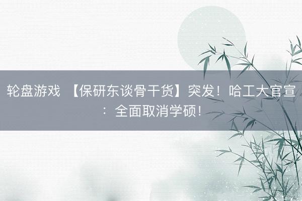 轮盘游戏 【保研东谈骨干货】突发!哈工大官宣:全面取消学硕!