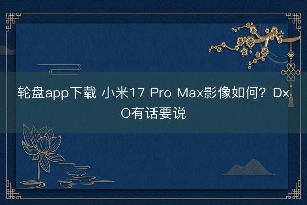 轮盘app下载 小米17 Pro Max影像如何?DxO有话要说