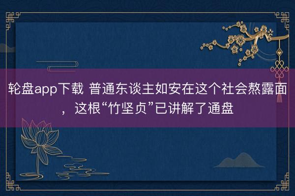轮盘app下载 普通东谈主如安在这个社会熬露面,这根“竹坚贞”已讲解了通盘