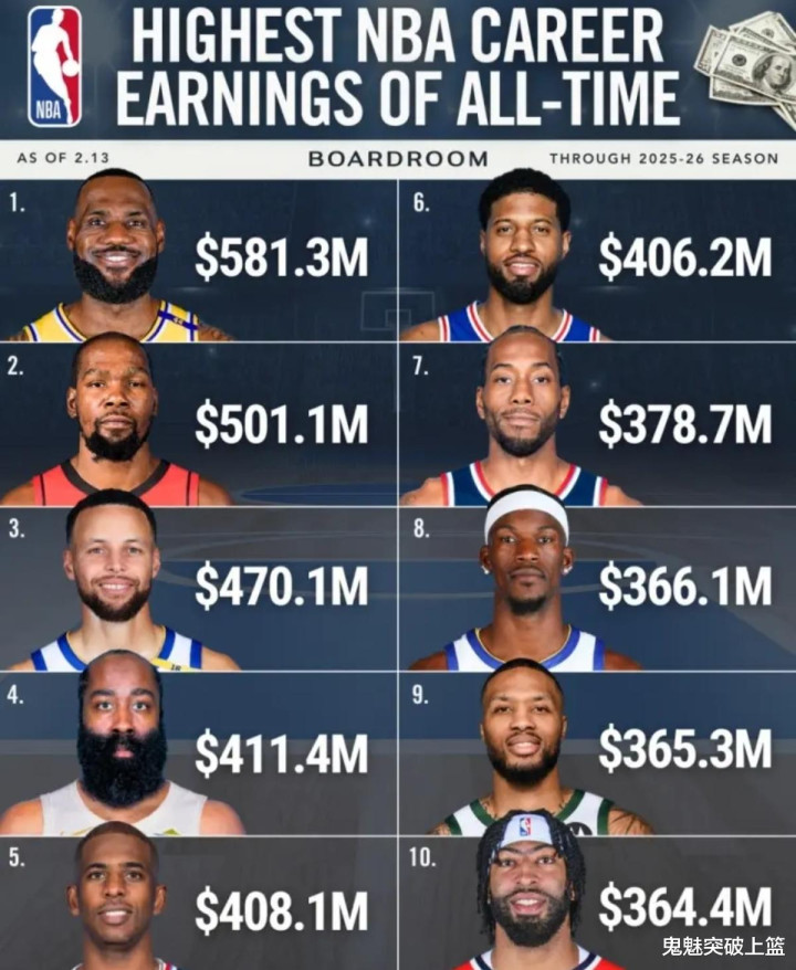 谁曾预想2005年选秀大会上的第四顺位小矮个后卫,他能在定约缔造21个赛季且赢得如斯多荣誉。 此外,保罗还在NBA赚到了NBA历史第五多的4.081亿好意思元球员薪资,仅次于勒布朗詹姆斯(5.813亿)、凯文杜兰特(5.011亿)、史蒂芬库里(4.701亿)、詹姆斯哈登(4.114亿)。