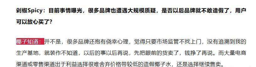 正本以为作秀源流在灌装身手,成果“椰子知谈”品牌的创举东谈主揭露了才知谈,原来好多作秀其实发生在更上游的“原料端”。