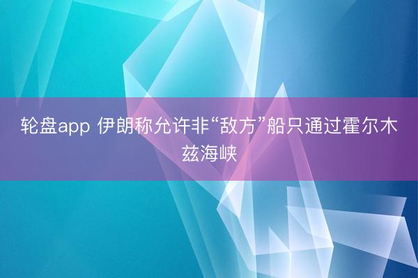 轮盘app 伊朗称允许非“敌方”船只通过霍尔木兹海峡