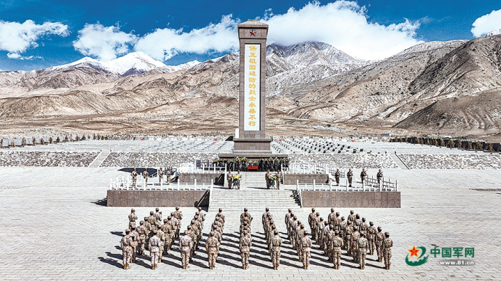 爽直节前夜,新疆军区某部官兵前去康西瓦义士陵寝祭奠英烈。靳开来摄