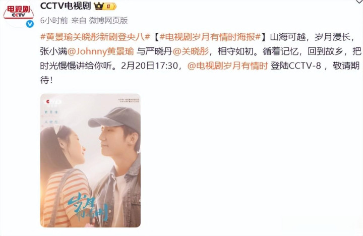 2026 年 2 月 14 日,# 黄景瑜关晓彤新剧登央八# 这个话题径直冲上微博热搜,关系参谋顿然破百万。